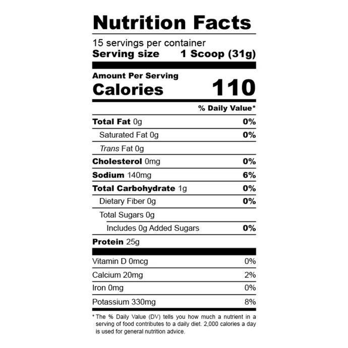 The same 25g of protein that most whey isolates do, but with only 110 calories and 0 carbs or fats.